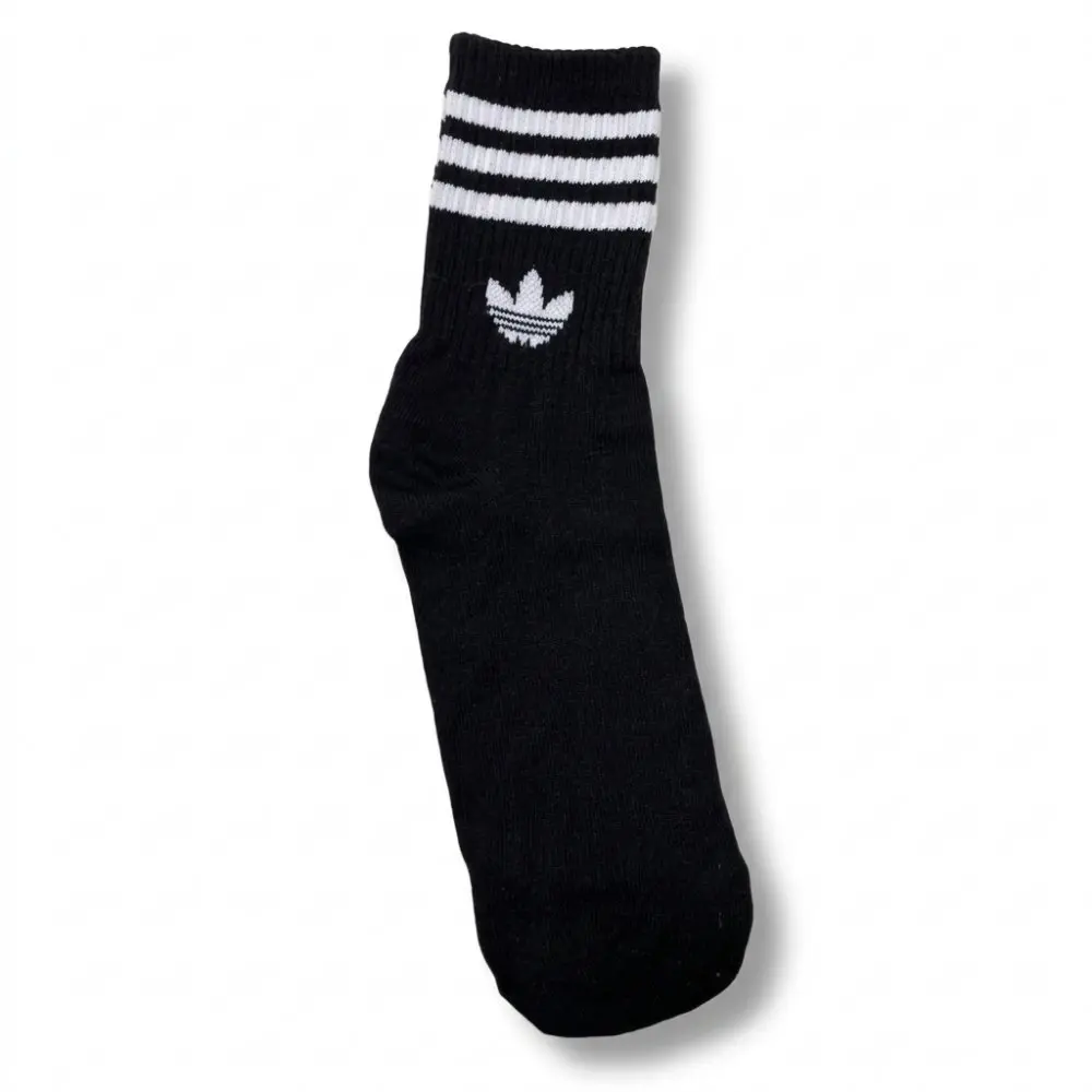 Par de medias 3/4 para adultos en color negro, estilo Adidas con diseño de 3 tiras blancas.