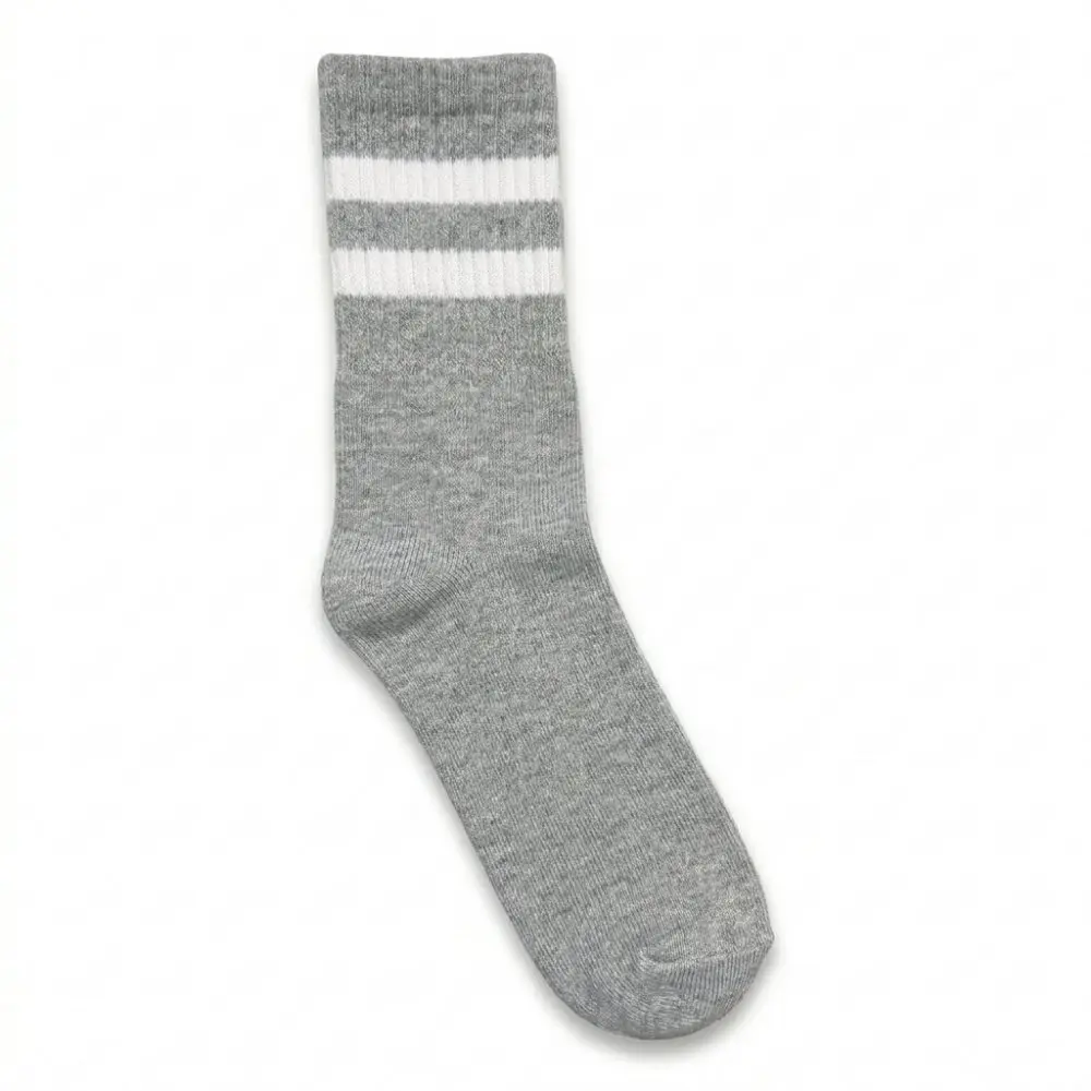 Par de medias 3/4 para adultos en color gris, con diseño de rayas blancas.