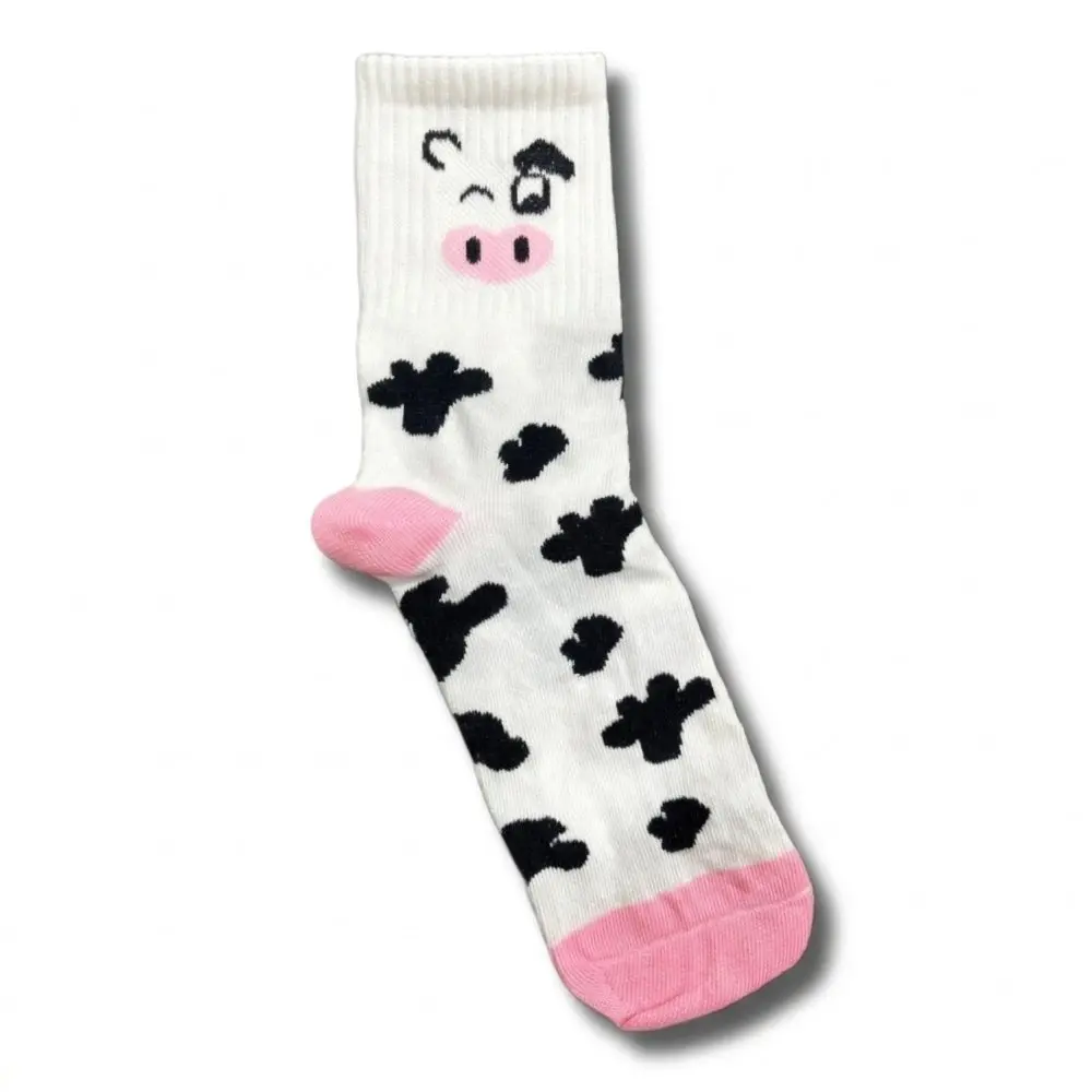 Par de medias 3/4 para adultos en color blanco y negro, con diseño de vaquita.